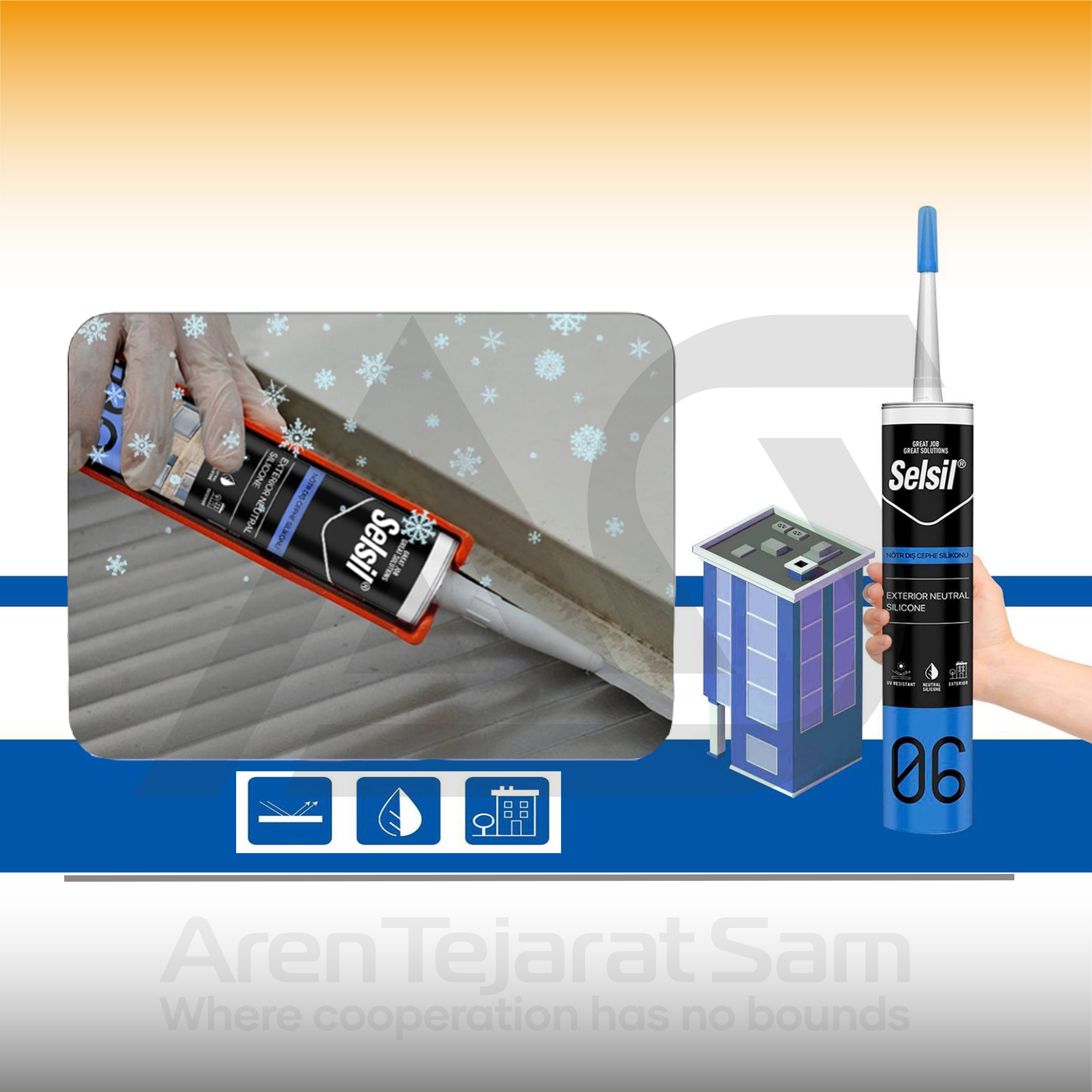 سیلیکون خنثی کارتریجی تخصصی نما سلسیل Selsil Specialized neutral silicone caulk for window cartilage